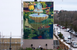 Choisi par les habitants de la Fontaine d’Ouche, Matthieu Pommier a puisé son inspiration dans les nombreuses sources d’eau qui entourent le quartier. Il signe un paysage apaisant, dominé par une fontaine monumentale, clin d’œil au nom du quartier qui n’en possède pourtant aucune. Des bateaux, motif récurrent dans son travail, rappellent quant à eux la navigation estivale sur le canal.